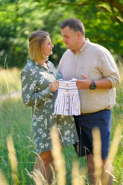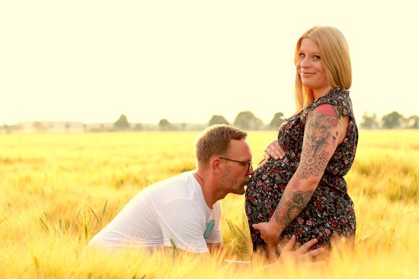 Und was soll ich anziehen? Diese Frage treibt viele werdende Mamas um. Einfache, schlichte Kleider sehen immer toll aus, sie geben dem Ganzen eine feminine Note und betonen die Rundungen des Bauches besonders. Solltest du kein Kleidertyp sein geschweige denn sowas überhaupt besitzen, zieh' die Sachen an, in denen du dich wohl fühlst! Wichtig in beiden Fällen ist aber: Warme Naturtöne (mit dezentem) Muster sehen auf dem fertigen Bild in der Regel am Schönsten aus!